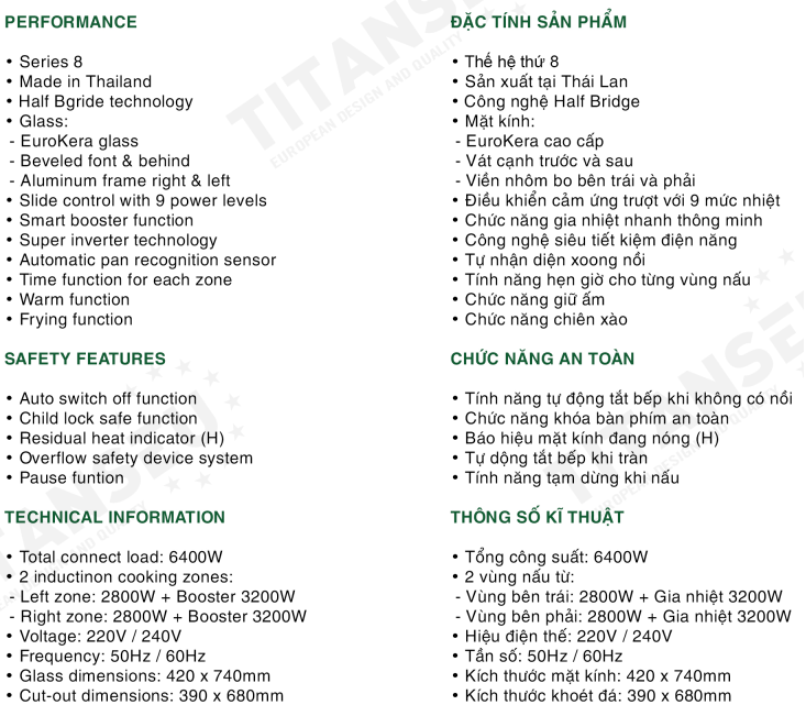 | + Left zone: 2800W + Booster 3200W | + Vùng Bên Trái: 2800W + Booster 3200W |