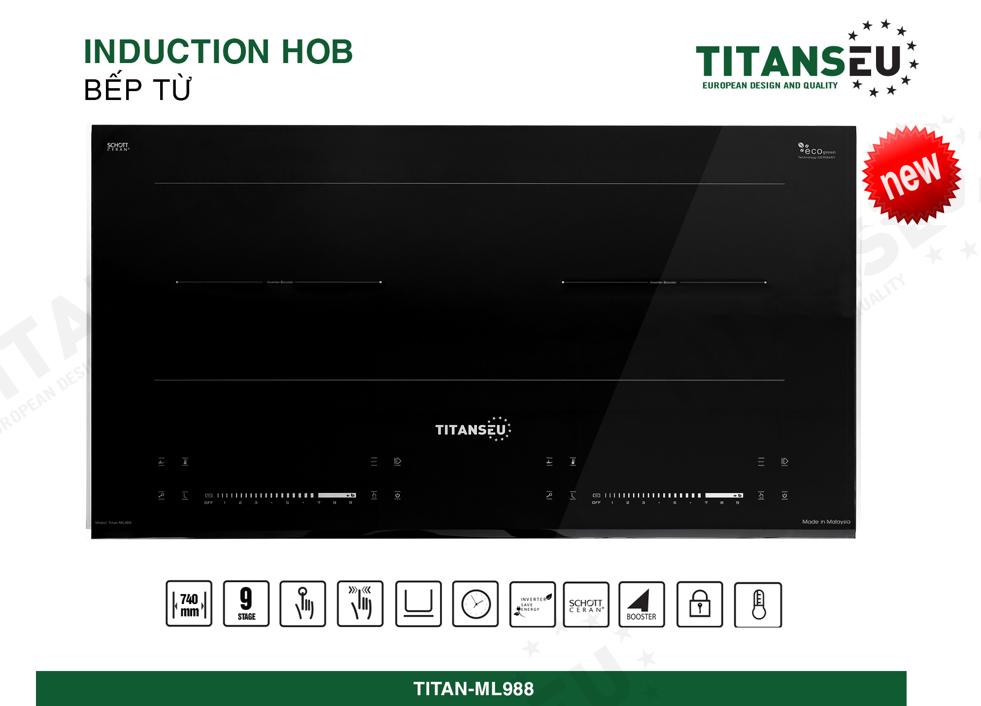 Bếp Từ Đôi 02 Vùng Nấu Serie 9 TITAN-ML988 TITANSEU