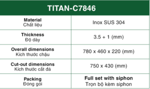 Chậu Rửa Bát 1 Hố INOX SUS304 TITAN-C7846 TITANSEU