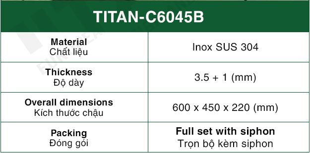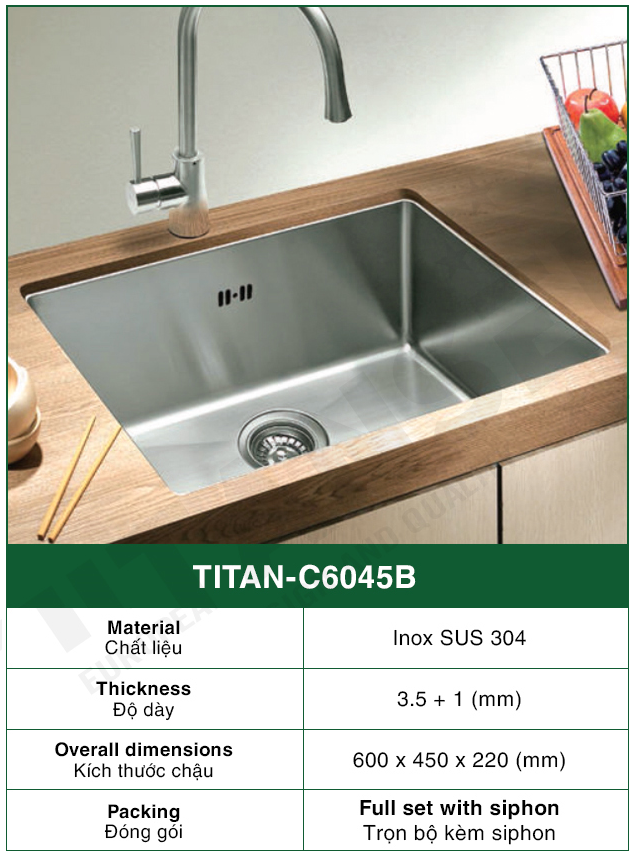 Chậu Rửa Bát 1 hố INOX SUS 304 TITAN-C6045B TITANSEU