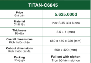 Chậu Rửa Bát 1 Hố TITAN-C6845N TITANSEU