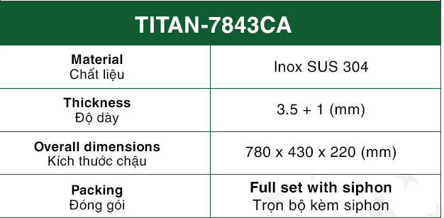Chậu Rửa Bát 2 hố INOX SUS 304 TITAN-7843CA TITANSEU