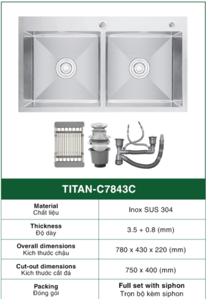 Sản phẩm được sản xuất theo tiêu chuẩn công nghệ hiện đại, đi kèm phụ kiện lắp đặt đầy đủ, dễ thi công và sử dụng lâu dài. Đây là dòng chậu rửa bát đáng tin cậy, phù hợp với những ai đang tìm kiếm sự tối giản, tiện lợi và bền bỉ trong không gian bếp gia đình.