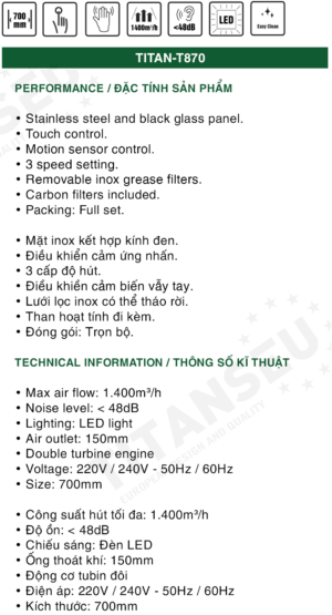 Máy Hút Mùi Chữ T Serie 8 TITAN-T870 TITANSEU