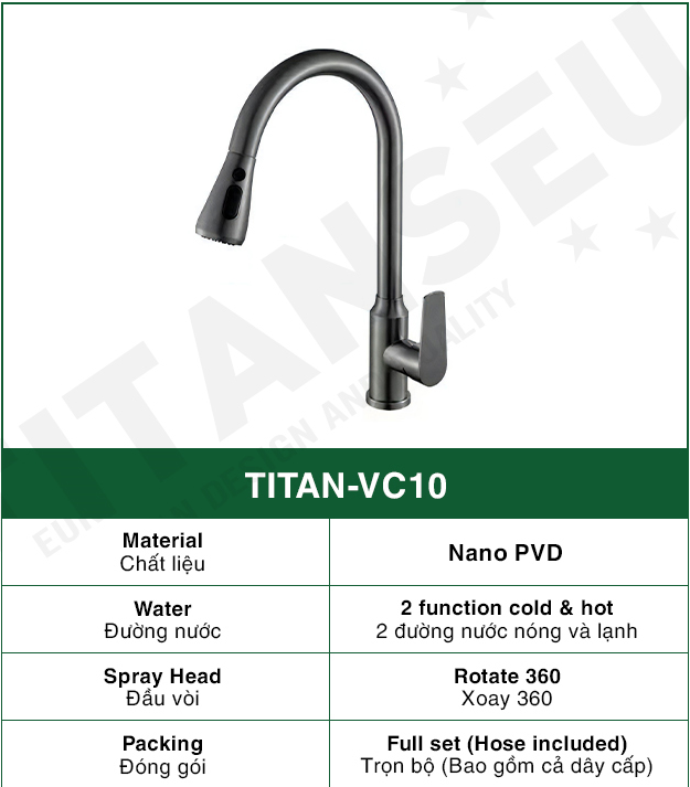 Vòi Rửa Bát Dây Rút TITAN-VC10 TITANSEU
