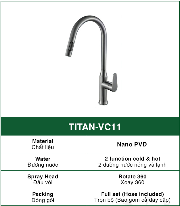 Vòi Rửa Bát Dây Rút TITAN-VC11 TITANSEU